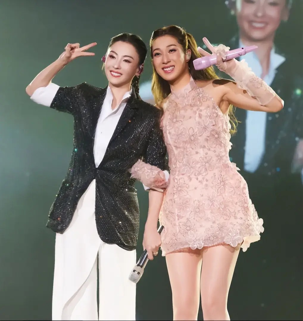 在娱乐圈内,也有朋友,张柏芝就是其中之一,张柏芝现身钟嘉欣演唱会,照片里的她穿黑色西装套装,在舞台上歌唱,状态超好,张柏芝舞台表演超有魅力,状态超好。张柏芝与观众打招呼,张柏芝钟嘉欣贴贴合照,张柏芝对镜比耶。