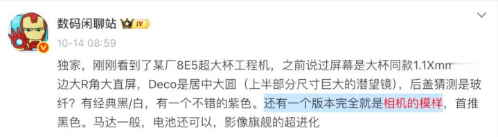 硬件配置方面,处理器预计是骁龙 8 Elite Gen 5,电池约 6800mAh,支持 100W 有线与 50W 无线充电。